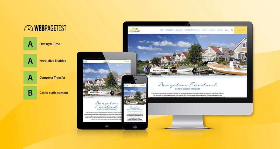 De afgelopen maanden hebben de teams van Snakeware en Beach Resort Makkum hard gewerkt om een geheel nieuwe site voor het resort in Makkum te maken. Het doel was om een intuïtieve gebruikerservaring op elk device te creëren. Dit door de site snel, gemakkelijk in het gebruik en sfeervol te maken. Op alle punten is dit ruim waar gemaakt. De eerste reacties van de gasten, die bij Beach Resort Makkum hun bungalow zoeken en boeken, zijn positief. De site scoort uiteraard hoog in Google Pagespeed op snelheid en gebruikerservaring. Via Web Page Test scoort de site uit 5 meetpunten maar liefst 4 keer de hoogste score, een A en 1 keer een B. zie http://www.webpagetest.org/.