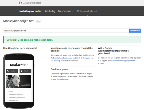 Om te bepalen of een website mobiel vriendelijk is, heeft Google een test site opgezet: