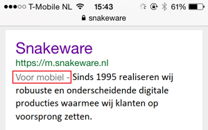 18 november 2014 introduceerde Google al het ‘voor mobiel’ label wat in de zoekresultaten aangeeft of een website geoptimaliseerd is voor de mobiele bezoeker.