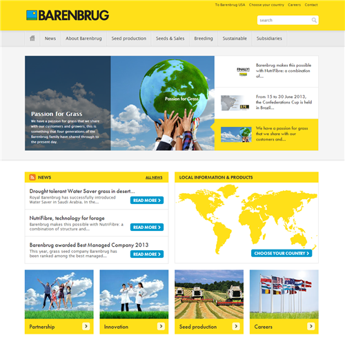 With the launch of the new corporate website environment, Royal Barenbrug Group will be able to do a much better job of organizing content on the backend making it easier to manage, update and share with other systems or make it available for print. According to Paul van den Berg, Marketing Manager Barenbrug Holding, “The flexibility of Snakeware and their CMS software allows us to easily expand content and sites to address the specific needs of our international subsidiairies and customers. The corporate portal, English, Portuguese and Dutch websites are live and we are working on the websites for France, Denmark and Poland. With the knowledge and input of Snakeware we are lining up Argentina and New Zealand for a launch first quarter 2014.”