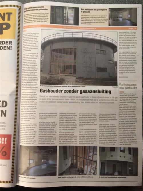 Sneeker Nieuwsblad kopt: Modern kantoor in oude Gashouder