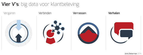 De succesvolle inzet van data voor een optimale klantbeleving verloopt volgens een proces van vergaren, verbinden en verrassen dat resulteert in verhalen.
